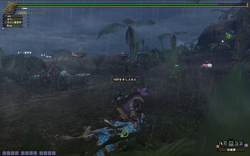 まず、鳥竜コイン集め。今週のフロンティアクエの特別演習ドスランポス2頭クエ。