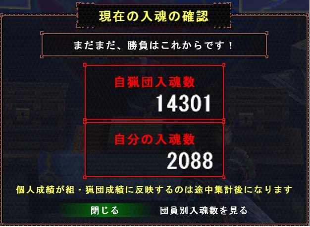 今回、猟団の入魂結果は前回の入魂より明らかに頑張ってくれました。