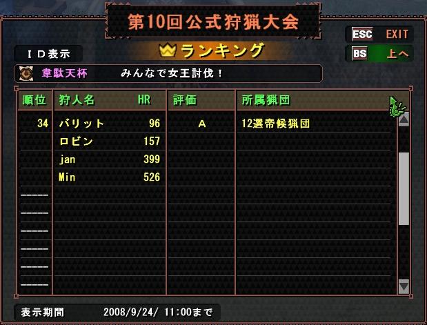 さて、本日は先日行われた狩猟大会の結果も発表されてましたので、猟団対抗の結果も載せて